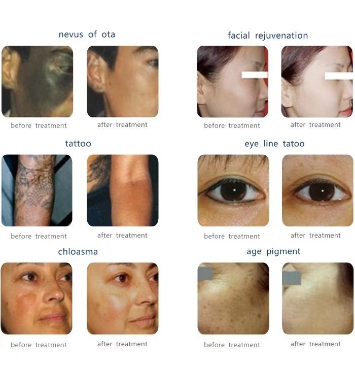 Εφαρμογές συσκευής αφαίρεσης τατουάζ Pico: Αναζωογόνηση σε όλο το χρώμα του δέρματος, αφαίρεση τατουάζ, αλλαγές χρωστικών, κηλίδες ηλικίας, σημάδια, αφαίρεση γραμμών χειλιών και ματιών.